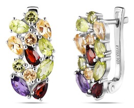 Серьги, аметист , гранат , перидот , цитрин, Жаден
