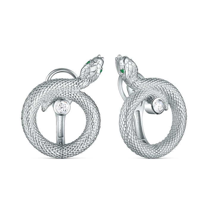 Совместные покупки Тюмень Ювелирные украшения и бижутерия Серьги — Серьги из серебра с фианитами родированные - Змеи 925 пробы 421-10-738р
