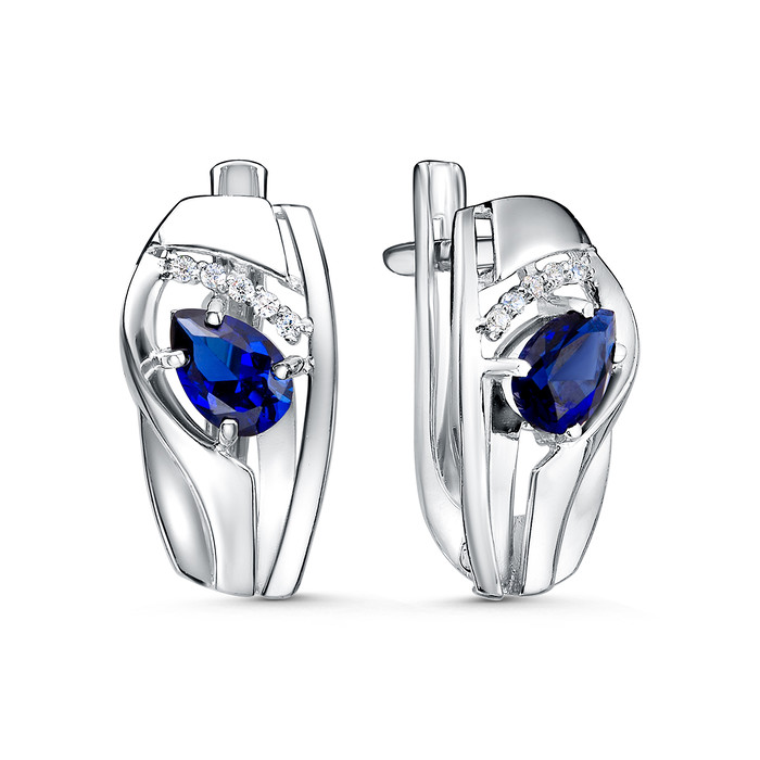 Совместные покупки Тюмень Ювелирные украшения и бижутерия Серьги — Серьги из серебра с гидротермальным сапфиром и фианитами родированные 2-4134-001