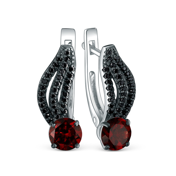 Совместные покупки Тюмень Ювелирные украшения и бижутерия Серьги — Серьги из серебра с гранатом и чёрной шпинелью родированные 925 пробы 2-533рч404