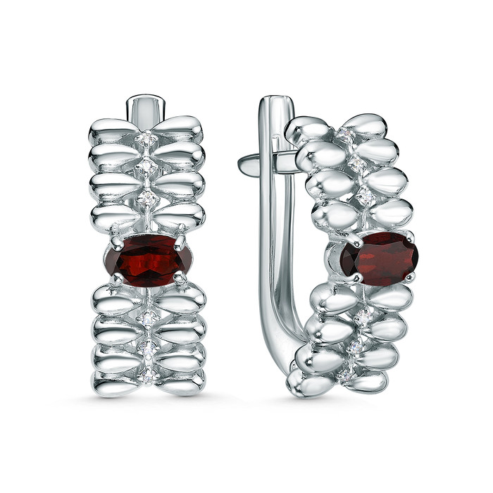 Серьги из серебра с гранатом и фианитами родированные 3921028664р404