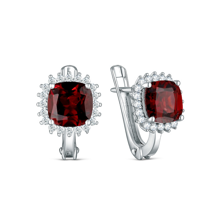 Совместные покупки Тюмень Ювелирные украшения и бижутерия Серьги — Серьги из серебра с гранатом и кубическим цирконием родированные 925 пробы GTE-3