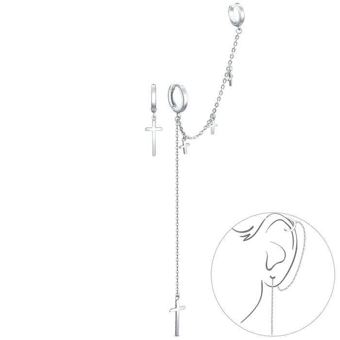 Серьги из серебра с кафф и крестами родированные 925 пробы 21061р