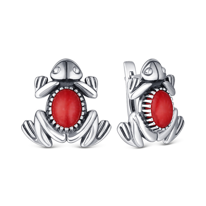 Совместные покупки Тюмень Ювелирные украшения и бижутерия Серьги — Серьги из серебра с кораллом родированное - лягушки 925 пробы С-4071ок454