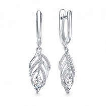 Серьги из серебра с культ. белым жемчугом и фианитами родированные