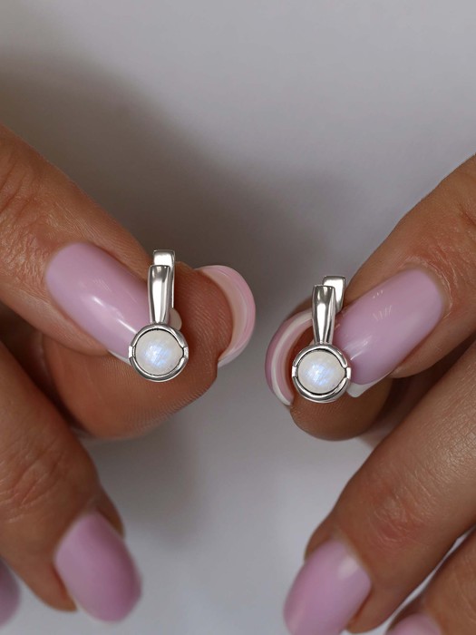 Серьги из серебра с лунным камнем родированные 2-460р636
