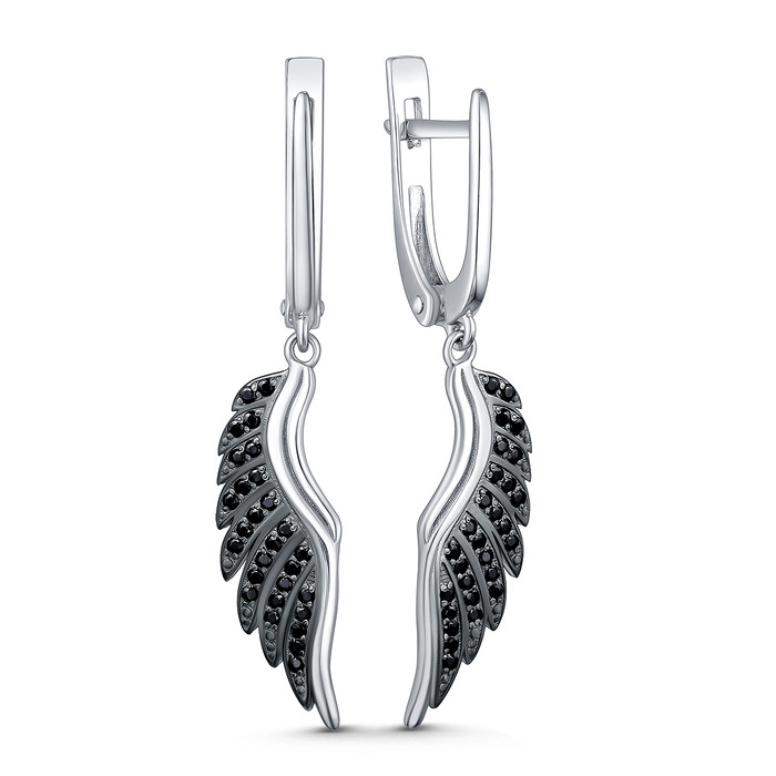 Совместные покупки Тюмень Ювелирные украшения и бижутерия Серьги — Серьги из серебра с натуральной чёрной шпинелью родированные - Крылья 925 пробы