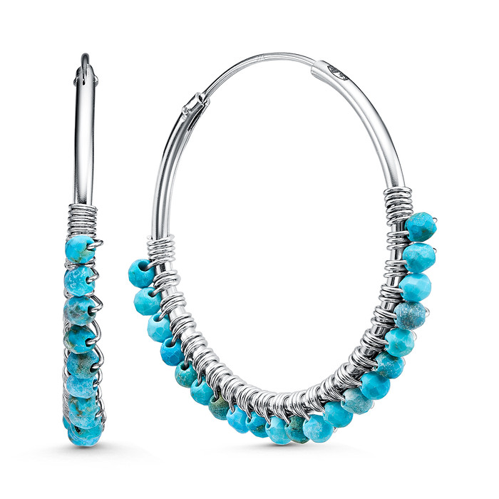 Совместные покупки Тюмень Ювелирные украшения и бижутерия Серьги — Серьги из серебра с натуральным бирюзовым хаулитом родированные 925 пробы 14500H