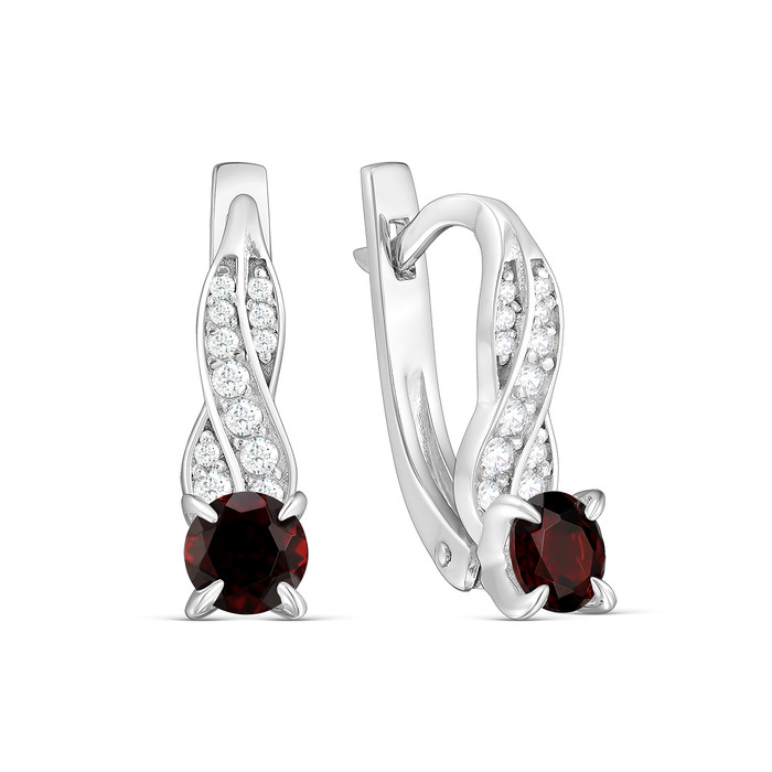 Совместные покупки Тюмень Ювелирные украшения и бижутерия Серьги — Серьги из серебра с натуральным гранатом и фианитами родированные 925 пробы 2-36