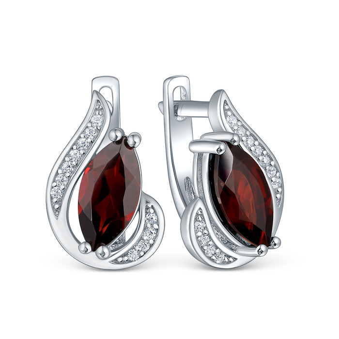 Совместные покупки Тюмень Ювелирные украшения и бижутерия Серьги — Серьги из серебра с натуральным гранатом и кубическим цирконием родированные 925