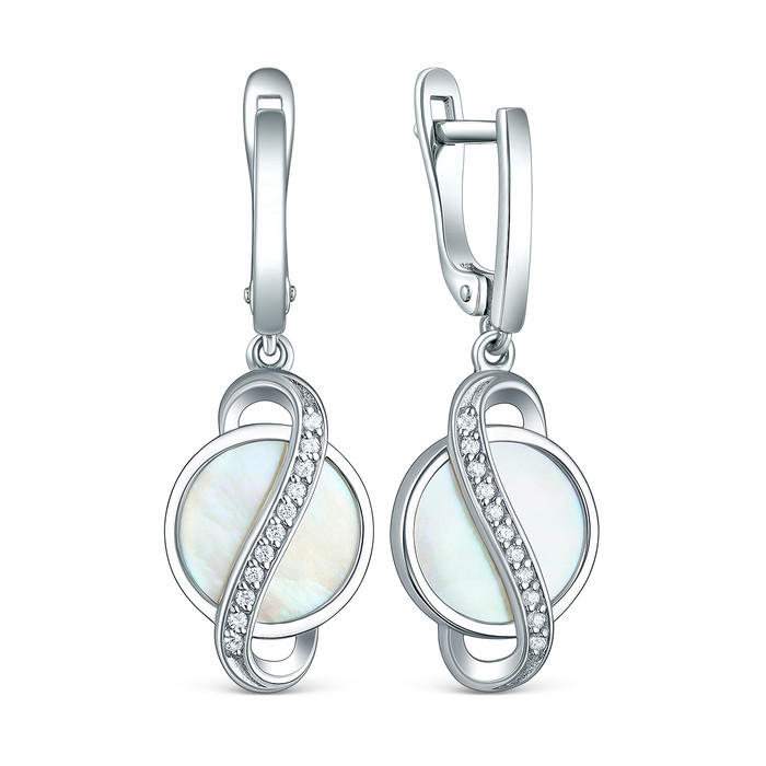Совместные покупки Тюмень Ювелирные украшения и бижутерия Серьги — Серьги из серебра с натуральным перламутром и фианитами родированные 925 пробы С