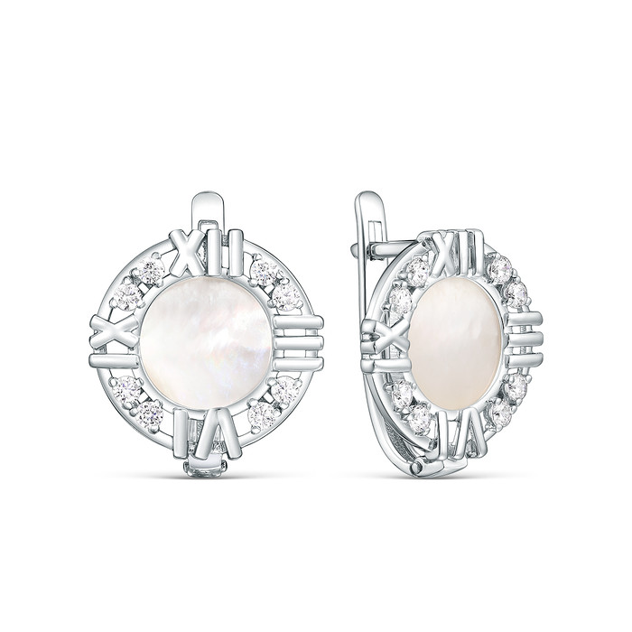 Совместные покупки Тюмень Ювелирные украшения и бижутерия Серьги — Серьги из серебра с перламутром и фианитами родированные 925 пробы с-4531-р