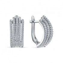Серьги из серебра с рубином и кубическим цирконием родированные