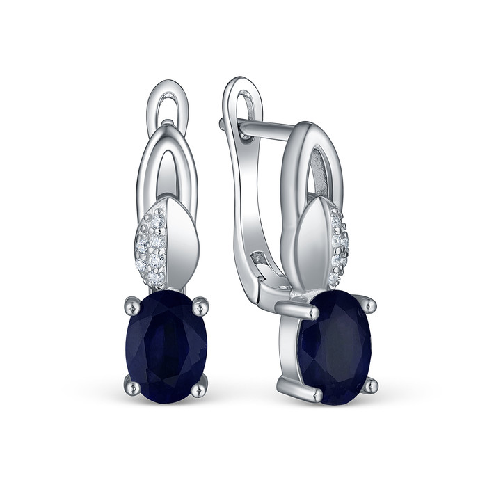 Серьги из серебра с сапфиром и кубическим цирконием родированные 925 пробы GTE-0