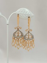 Серьги из золочёного серебра с гидротермальным кварцем цвета празиолит, жемчугом
