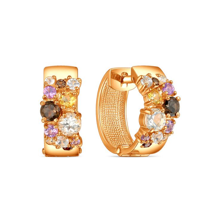 Серьги из золочёного серебра с гранатом, топазом, раухтопазом, цитрином, празиол