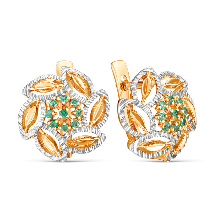 Совместные покупки Тюмень Ювелирные украшения и бижутерия Серьги — Серьги из золочёного серебра с изумрудом и родированием 925 пробы С-3944зрс1133