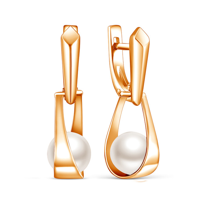 Серьги из золочёного серебра с культивированным жемчугом 2-404з1005