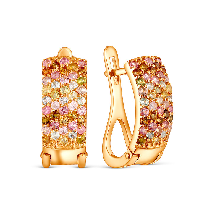 Совместные покупки Тюмень Ювелирные украшения и бижутерия Серьги — Серьги из золочёного серебра с турмалином мульти 925 пробы 2-473з428