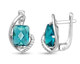 Серьги из серебра с натуральным горным хрусталём и чёрной шпинелью родированные
