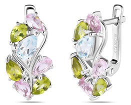 Серьги, арт.658611 Серебро Серебро 925, 4,55 гр., изумруд берилл , рубин корунд , сапфир корунд , шпинель