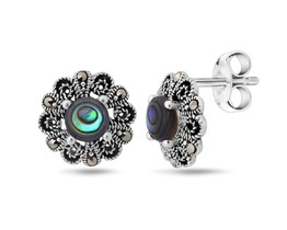 Серьги, марказит , перламутр зелёный, SL-LNJ339