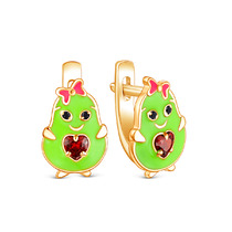 Серьги детские из золочёного серебра с эмалью и фианитами - Авокадо 925 пробы 23