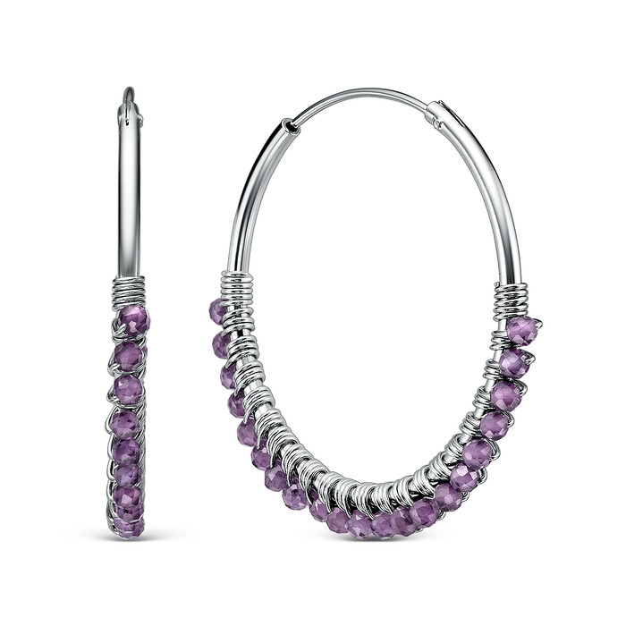 Совместные покупки Тюмень Ювелирные украшения и бижутерия Серьги — Серьги-конго из серебра с аметистом родированные 925 пробы 14500AMRH