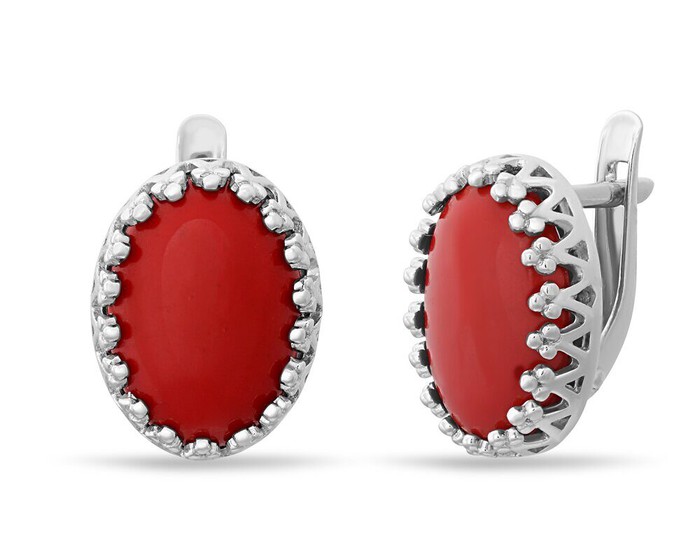 Серьги, арт.656315 Серебро Серебро 925, 4,66 гр., коралл пресс.