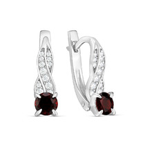 Серьги из серебра с натуральным гранатом и фианитами родированные 925 пробы 2-36