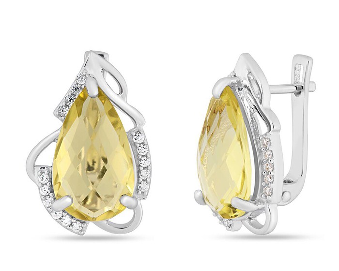 Серьги, арт.656138 Серебро Серебро 925, 6,02 гр., лимонный топаз