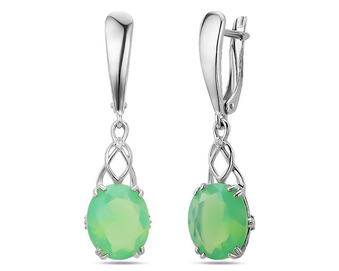 Серьги, арт.658149 Серебро Серебро 925, 4,78 гр., лунный камень зеленый