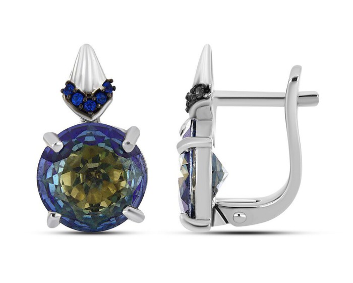 Серьги, арт.657892 Серебро Серебро 925, 5,06 гр., мистик кварц синий , наносапфир