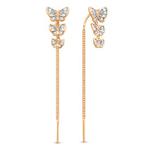 Заказать Серьги-продёвки длинные из золочёного серебра с фианитами и родированием - Бабоч