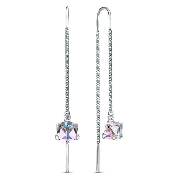Серьги-продёвки из серебра с кристаллами премиум Австрия цвета розовый мистик ро