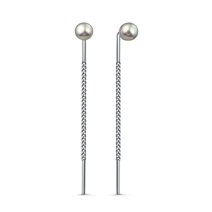 Серьги-продёвки из серебра с культивированным серым жемчугом родированные 925 пр
