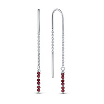 Серьги-продёвки из серебра с натуральным гранатом родированные 925 пробы 15864GR