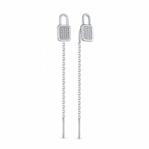 Серьги-продёвки из серебра с фианитами родированные 925 пробы с-0005р200