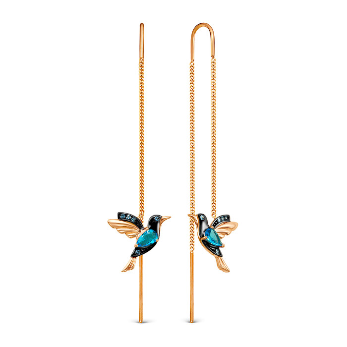Серьги-продёвки из золочёного серебра с плавленым кварцем swiss топаз и фианитам