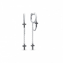 Серьги-продёвки из золочёного серебра с пл.кварцем цв.хризолит, чёрный, родирова