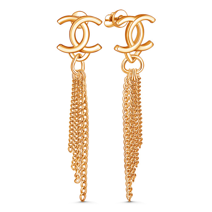 Совместные покупки Тюмень Ювелирные украшения и бижутерия Серьги — Серьги-пусеты длинные с цепями из золочёного серебра 925 пробы с-0122з