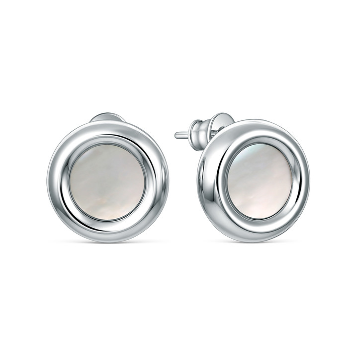 Совместные покупки Тюмень Ювелирные украшения и бижутерия Серьги — Серьги-пусеты из серебра с белым перламутром родированные 221-10-288-1р