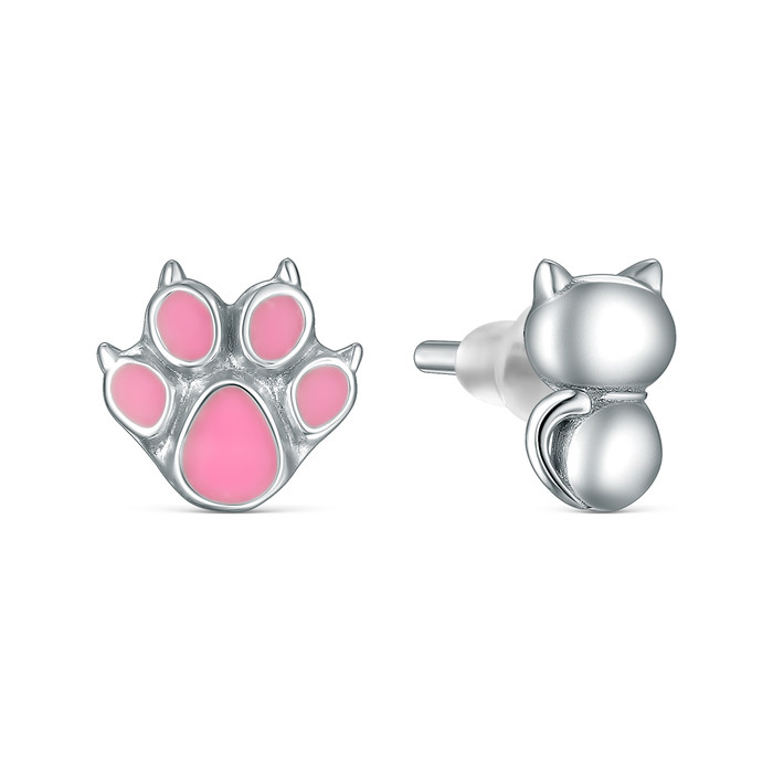 Совместные покупки Тюмень Ювелирные украшения и бижутерия Серьги — Серьги-пусеты из серебра с эмалью родированные - Лапка и Кошка 2110130