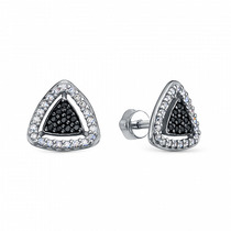 — Серьги-пусеты из серебра с фианитами родированные 925 пробы с043р200