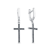 Серьги-пусеты из серебра с фианитами родированные 925 пробы с13-03