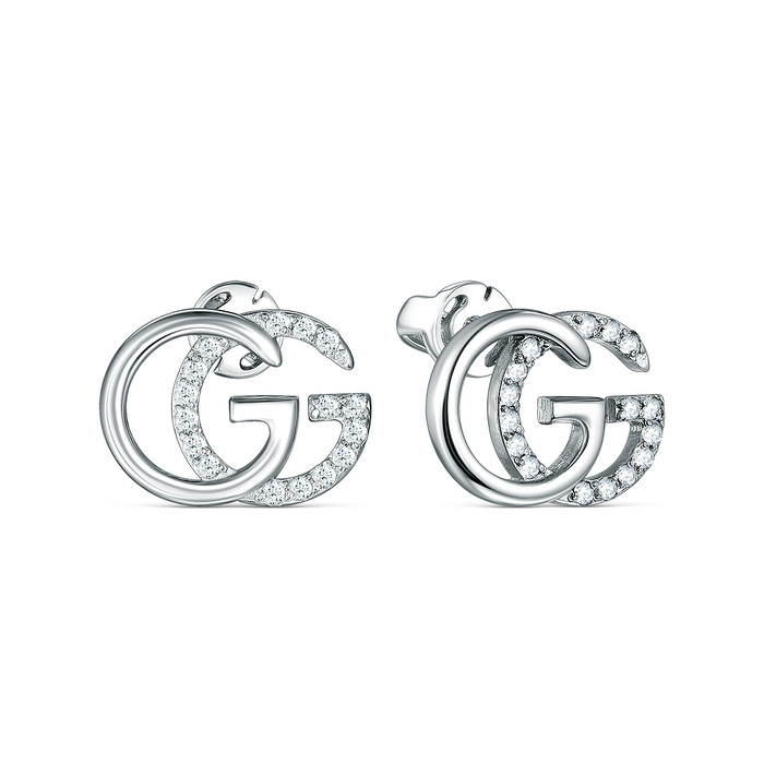 Совместные покупки Тюмень Ювелирные украшения и бижутерия Серьги — Серьги-пусеты из серебра с фианитами родированные - GG 925 пробы 4-579р200