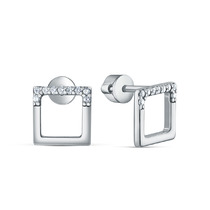 Совместные покупки Тюмень Ювелирные украшения и бижутерия Серьги — Серьги-пусеты из серебра с фианитами родированные - Квадраты 925 пробы 12-1377р