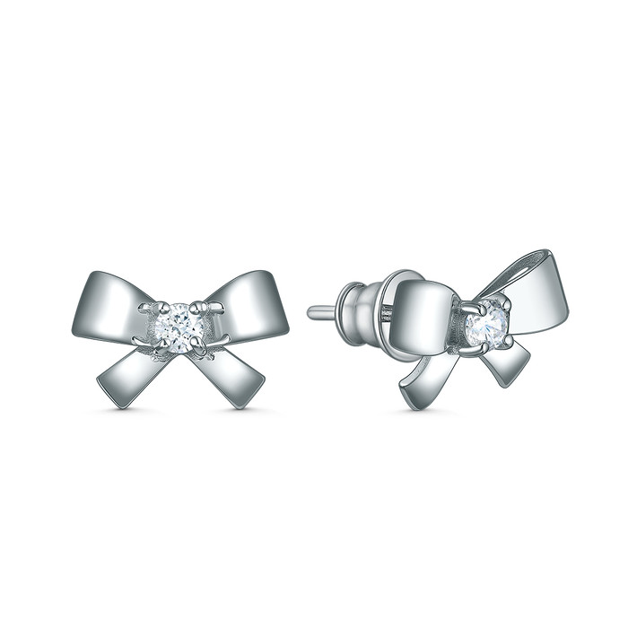 Совместные покупки Тюмень Ювелирные украшения и бижутерия Серьги — Серьги-пусеты из серебра с фианитом родированные - Банты 221-10-256-1р