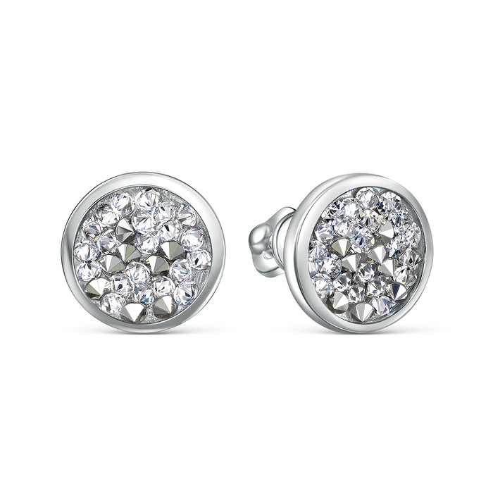 Серьги-пусеты из серебра с кристаллом Премиум Австрия родированные 925 пробы С-0