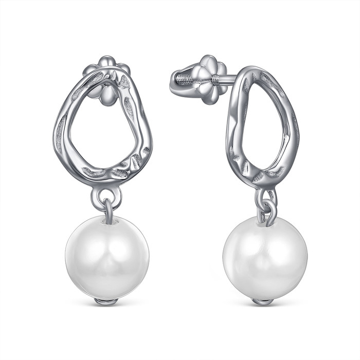 Серьги-пусеты из серебра с жемчугом родированные 2340245406